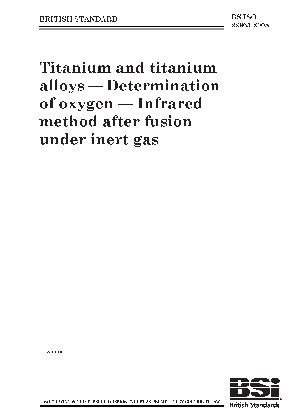 Absorption spectrophotometry;Determination of content;Melting;Oxygen;Infrared radiation;Titanium alloys;Chemical analysis and testing;Titanium