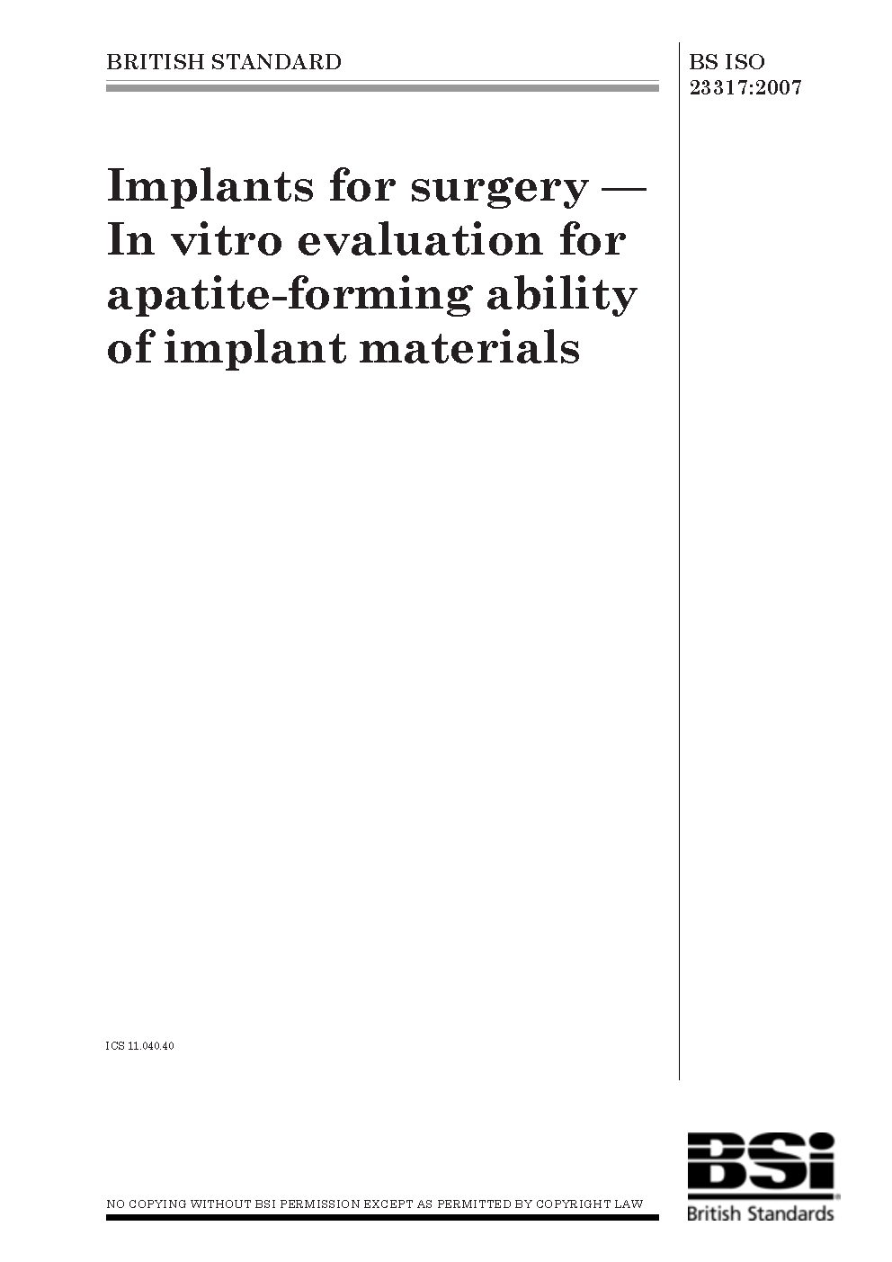 Implants for surgery. Materials. Simulated body fluid (SBF) preparation procedure and test method to detect apatite formation in SBF for initial screening of bone-contacting implant materials