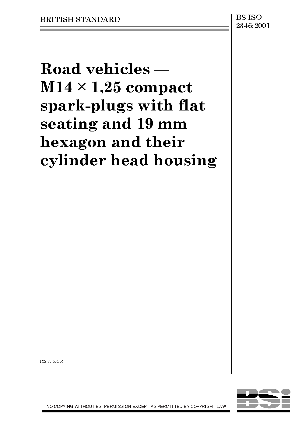Road vehicles. M14 x 1,25 compact spark-plugs with flat seating and 19 mm hexagon and their cylinder head housing