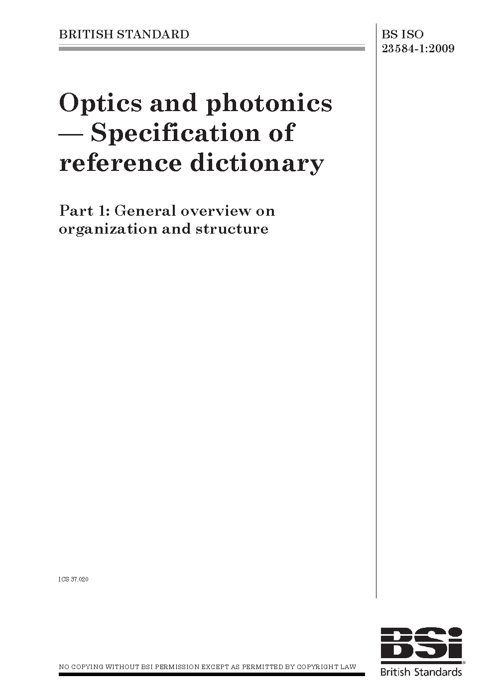 Optics and photonics. Specification of reference dictionary General overview on organization structure