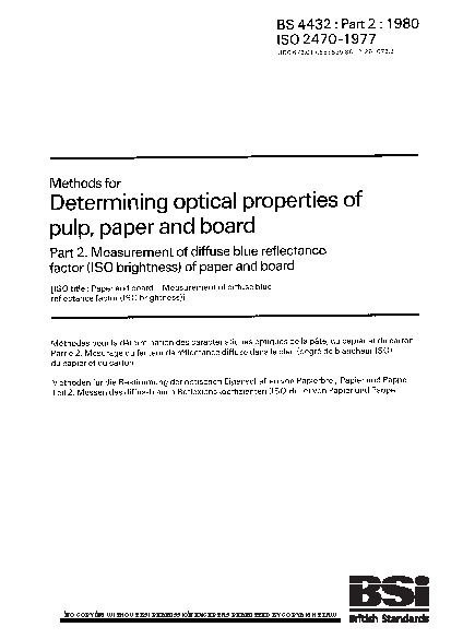 Paper, board and pulps. Measurement of diffuse blue reflectance factor (ISO brightness)
