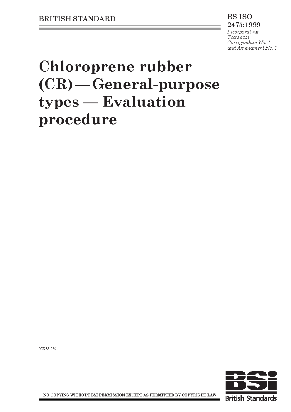 Chloroprene rubber (CR). General-purpose types. Evaluation procedure