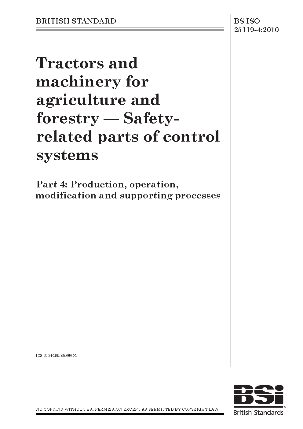 Tractors and machinery for agriculture forestry. Safety-related parts of control systems Production, operation, modification supporting processes