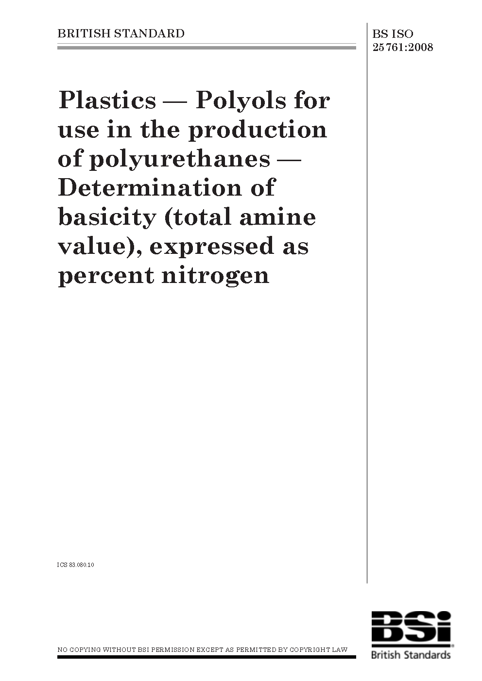 Plastics. Polyols for use in the production of polyurethanes. Determination of basicity (total amine value), expressed as percent nitrogen