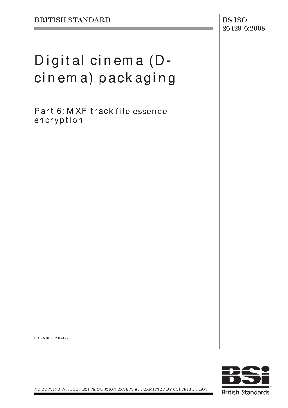 Digital cinema (D-cinema) packaging MXF track file essence encryption