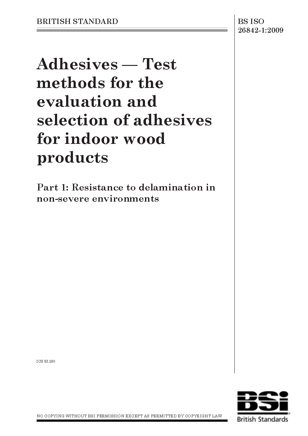 Adhesives. Test methods for the evaluation and selection of adhesives indoor wood products Resistance to delamination in non-severe environments