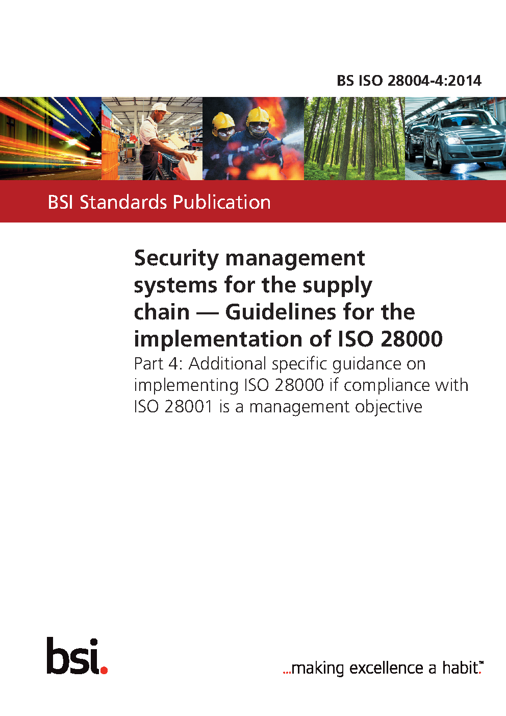 Security management systems for the supply chain. Guidelines implementation of ISO 28000 Additional specific guidance on implementing if compliance with 28001 is a objective