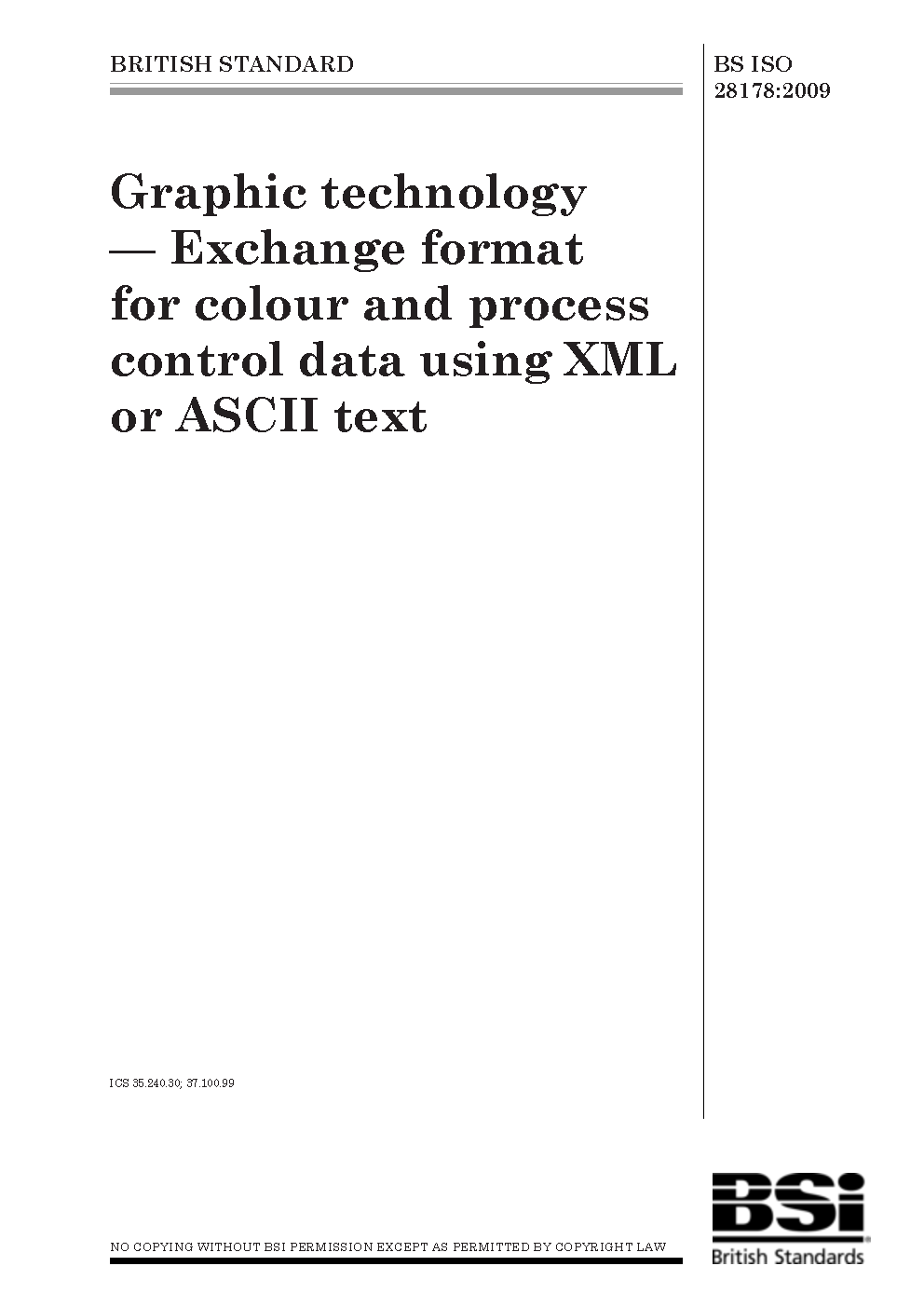 Graphic technology - Exchange format for colour and process control data using XML or ASCII text