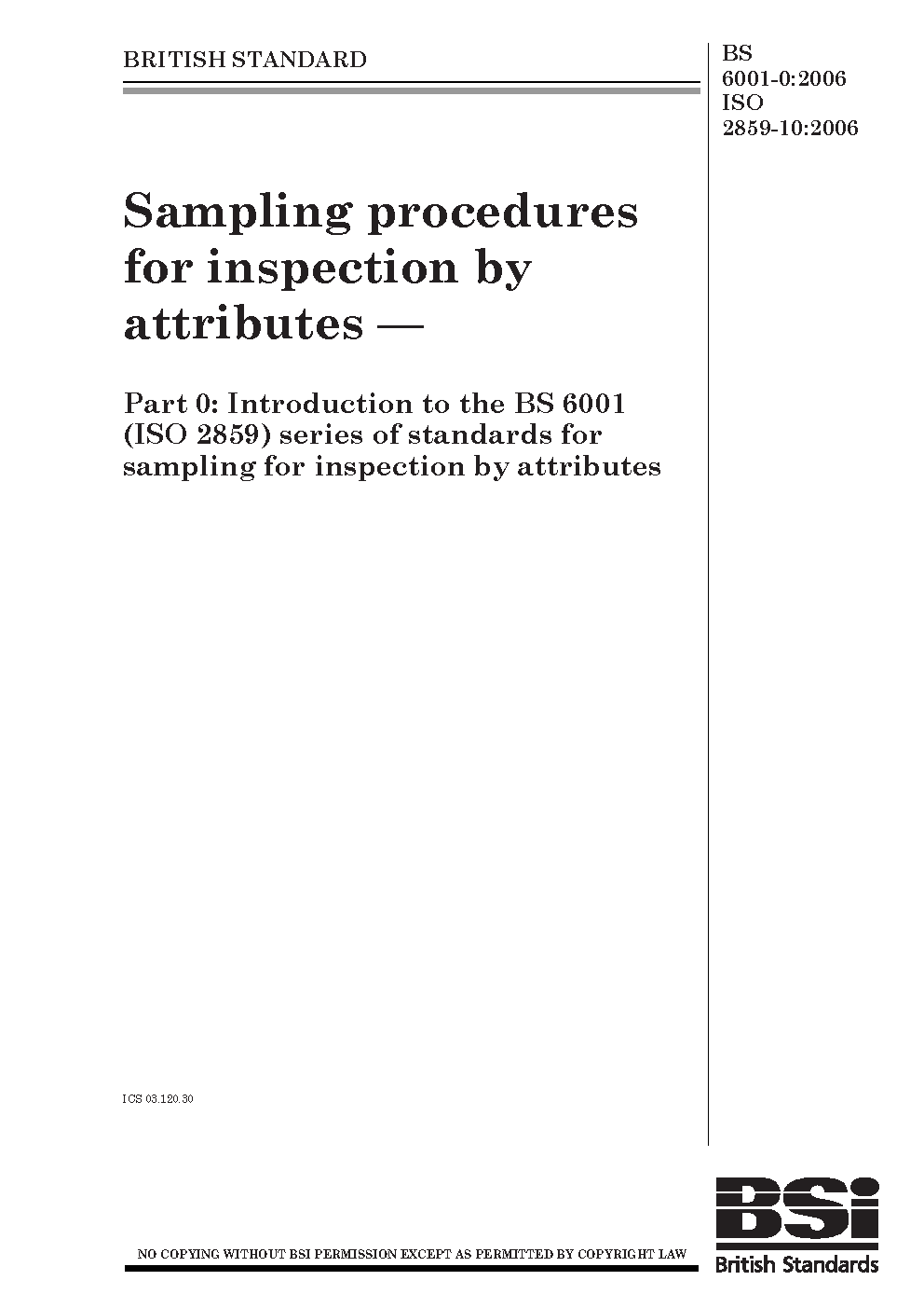Sampling procedures for inspection by attributes. Introduction to the ISO 2859 series of standards for sampling for inspection by attributes
