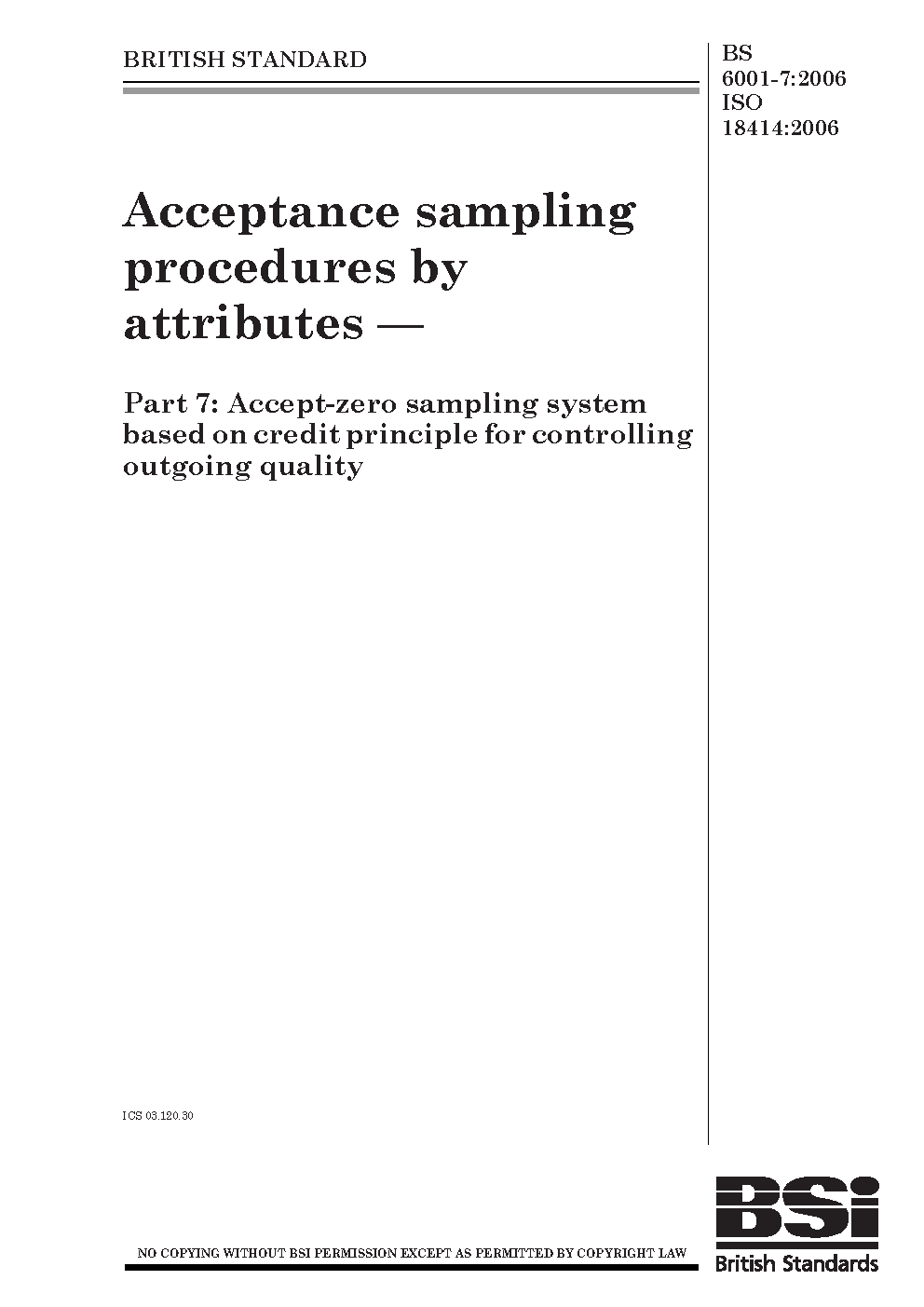 Non-destructive testing;Inspection by attributes;Acceptance inspection;Statistical methods of analysis;Quality control;Statistical quality control;Acceptance (approval);Batch testing;Samples;Quality assurance;Sampling methods;Conformity