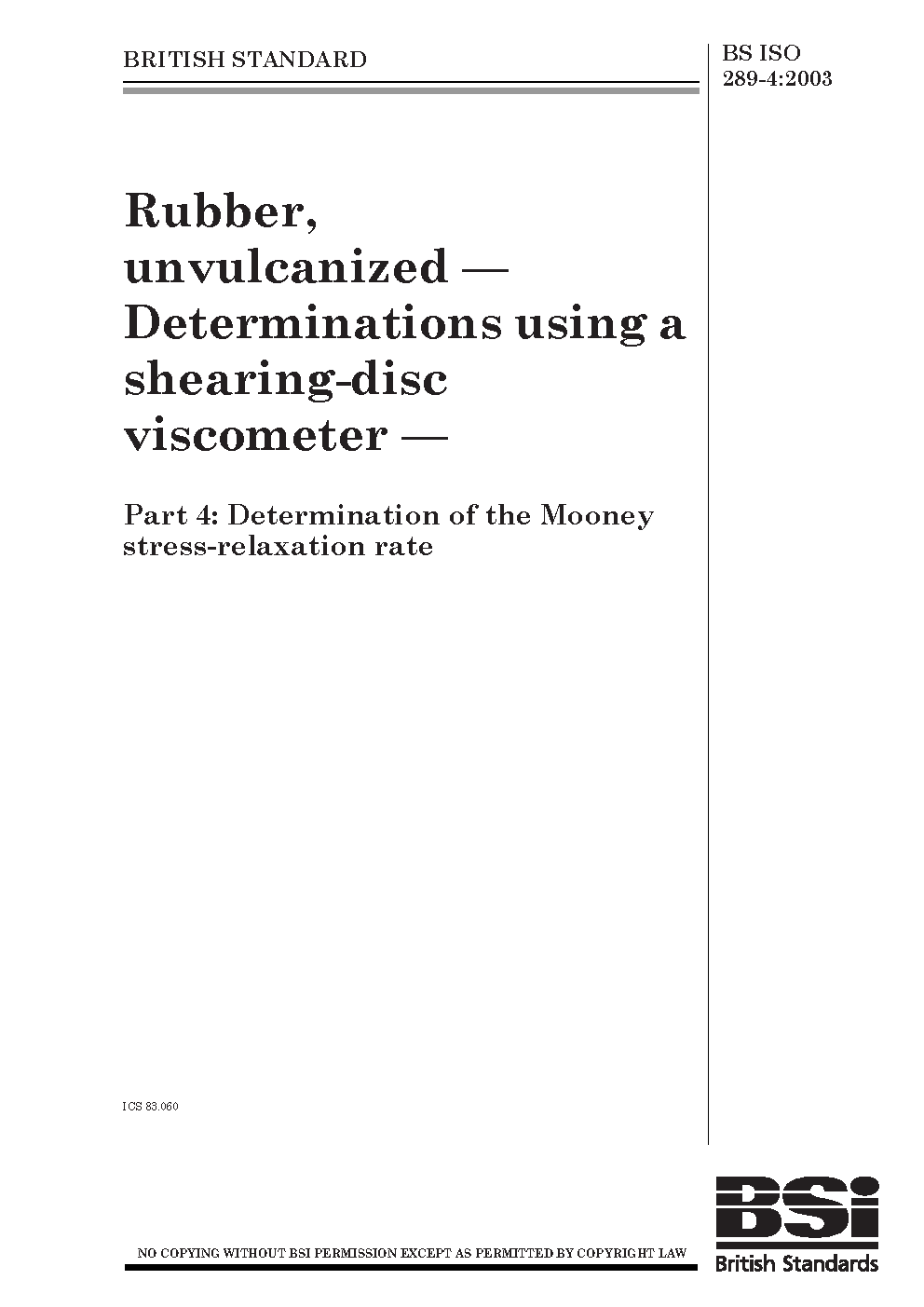 Rubber, unvulcanized. Determinations using a shearing-disc viscometer Determination of the Mooney stress-relaxation rate