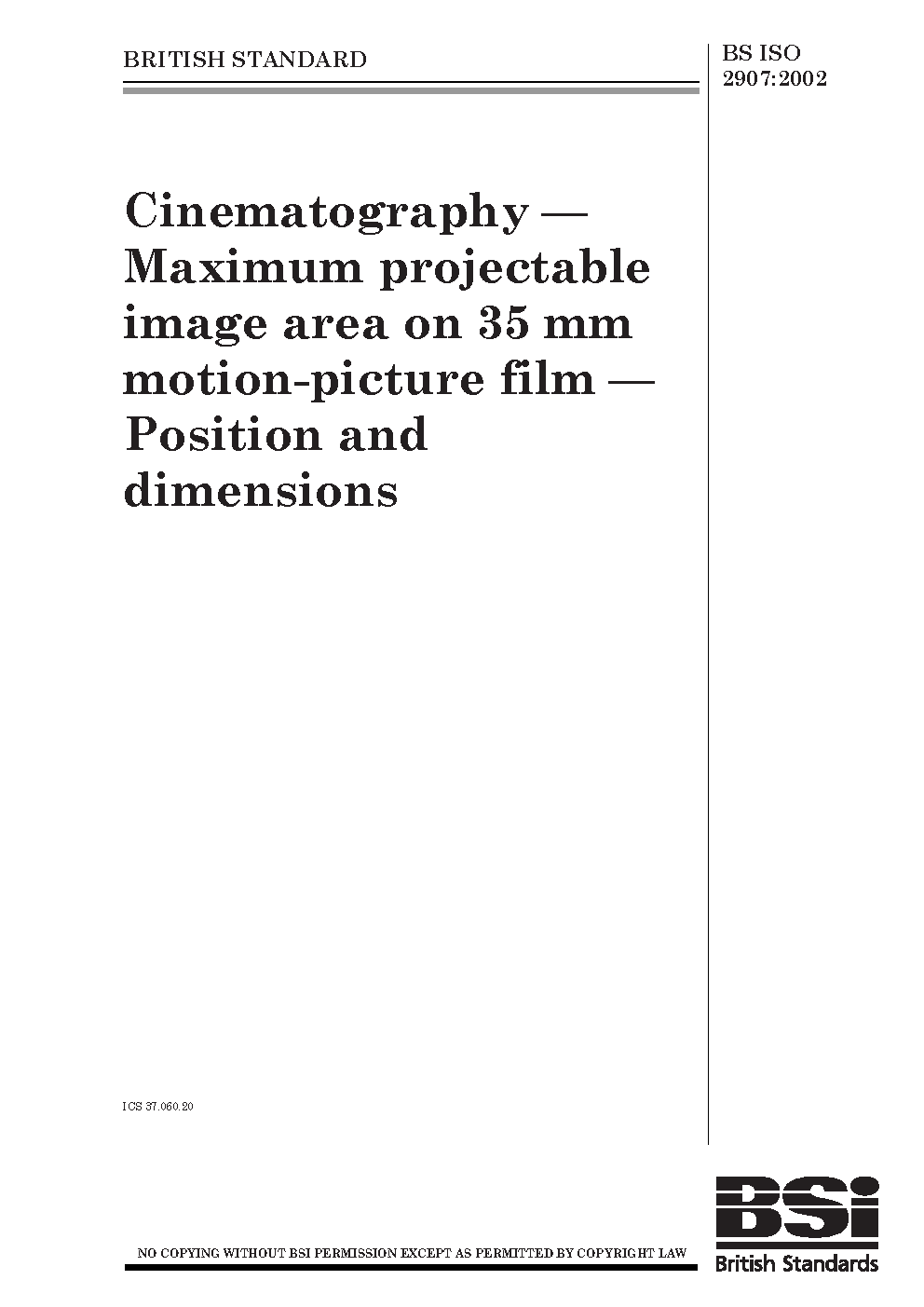 Cinematography. Maximum projectable image area on 35 mm motion-picture film. Position and dimensions