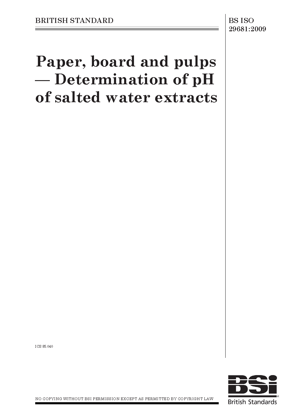 Paper, board and pulps. Determination of pH of salted water extracts