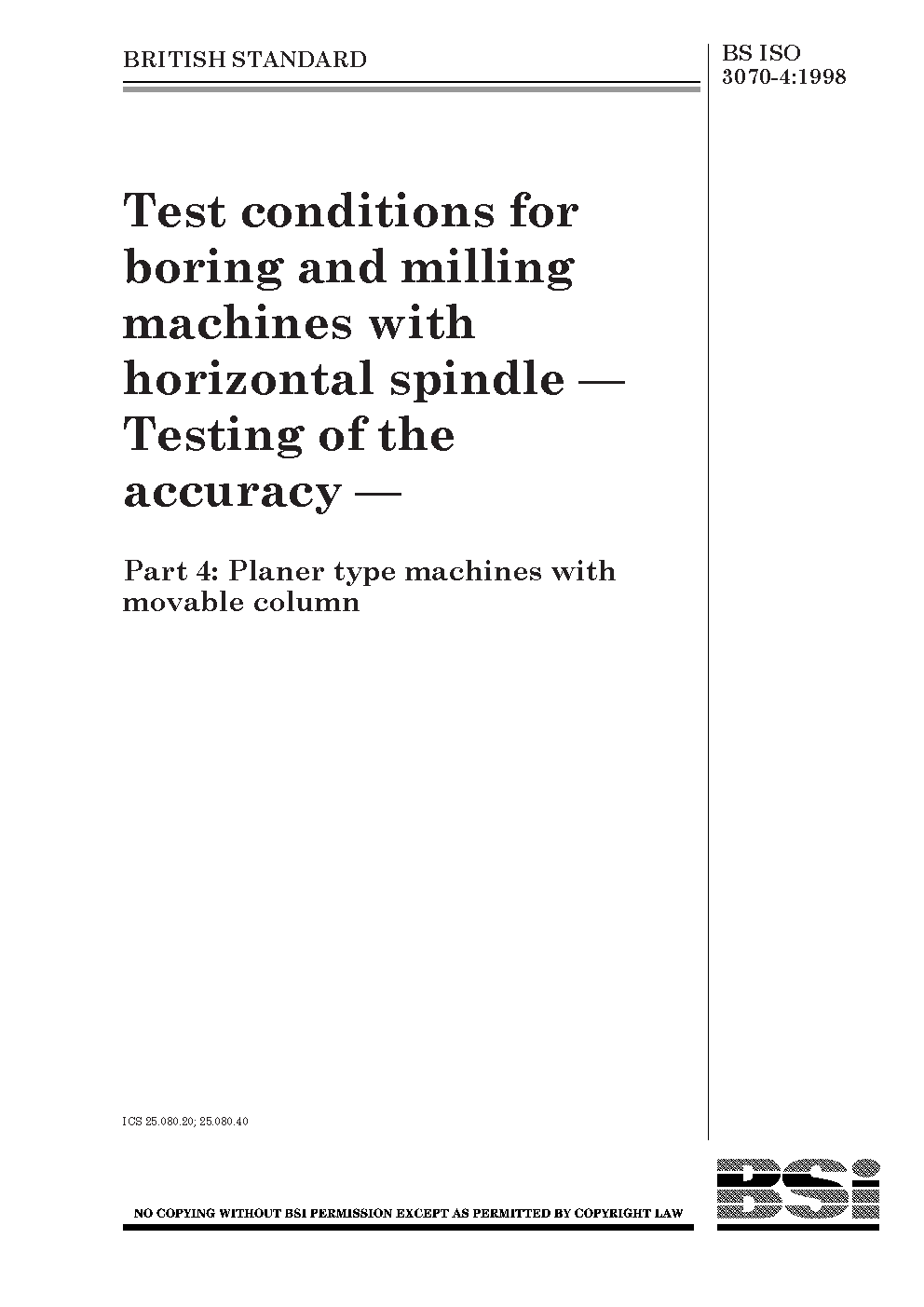 Test conditions for boring and milling machines with horizontal spindle. Testing of the accuracy Planer type movable column
