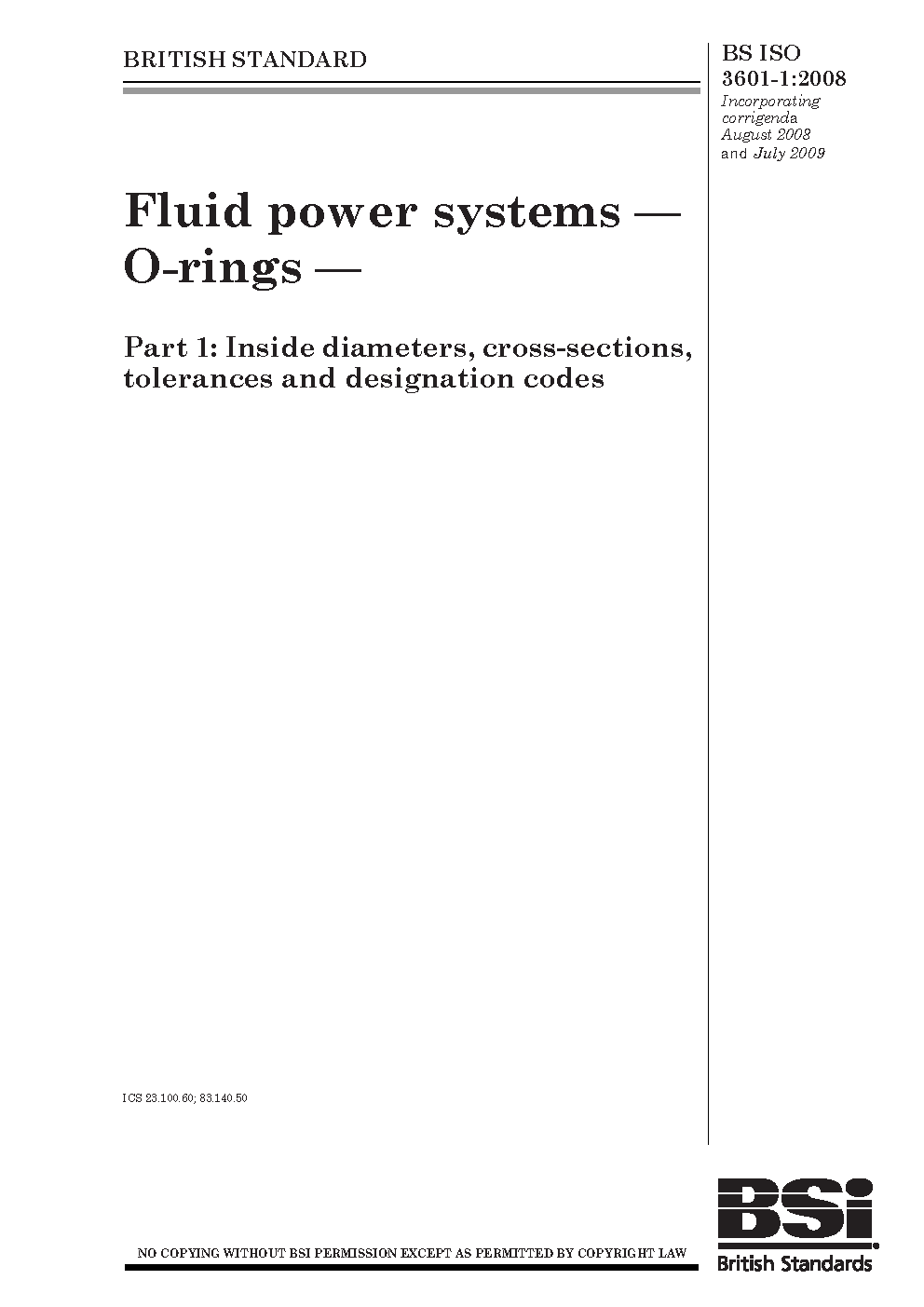 Fluid power systems. O-rings Inside diameters, cross-sections, tolerances and designation codes