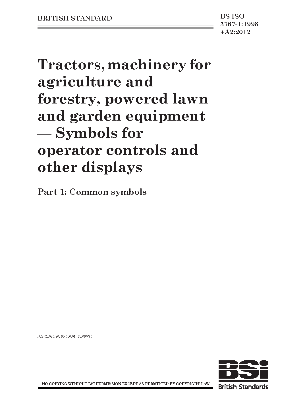 Tractors, machinery for agriculture and forestry, powered lawn garden equipment. Symbols operator controls other displays Common symbols