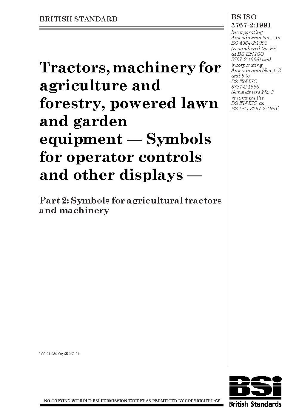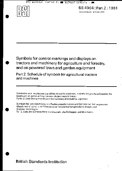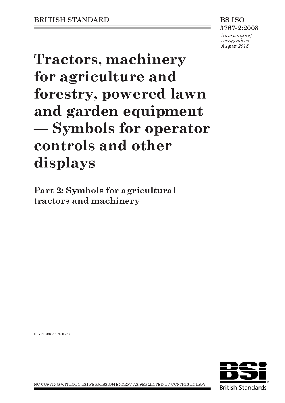 Tractors, machinery for agriculture and forestry, powered lawn garden equipment. Symbols operator controls other displays agricultural tractors