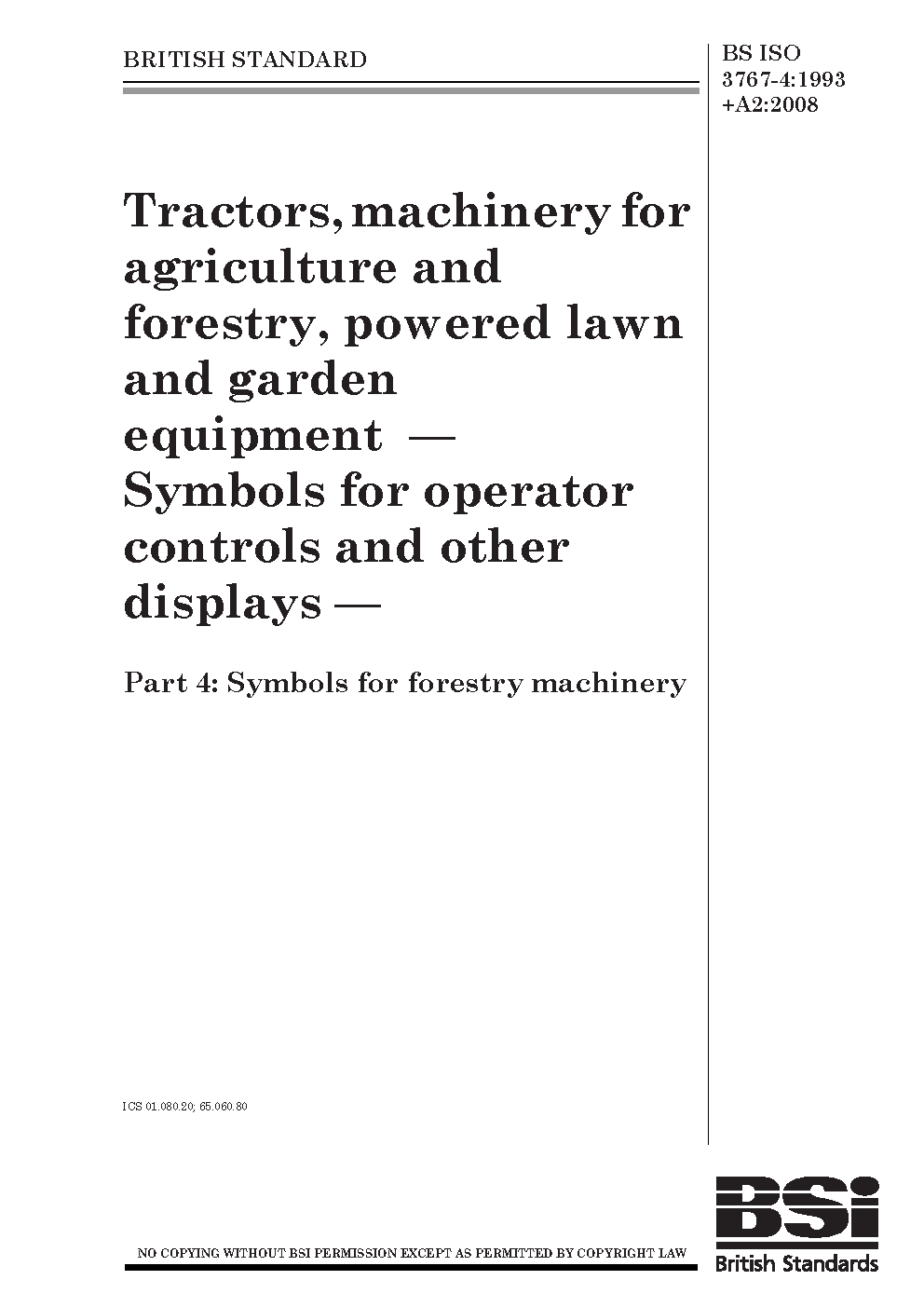 Forestry equipment;Symbols;Marking;Graphic symbols;Control devices;Display devices;Agricultural tractors;Agricultural equipment
