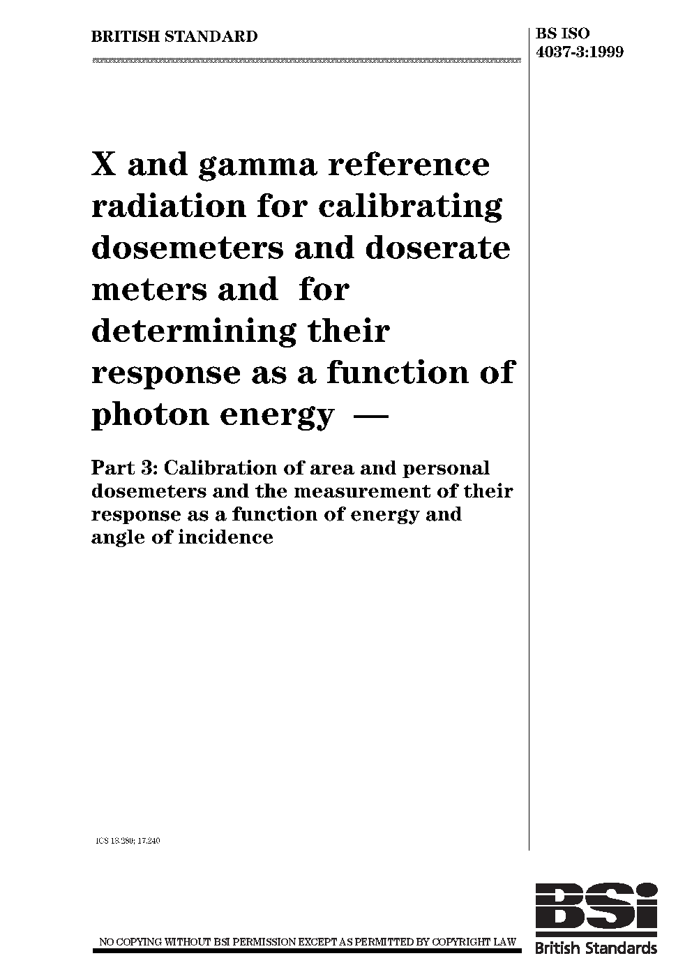 X and gamma reference radiation for calibrating dosemeters doserate meters determining their response as a function of photon energy Calibration area personal the measurement angle incidence