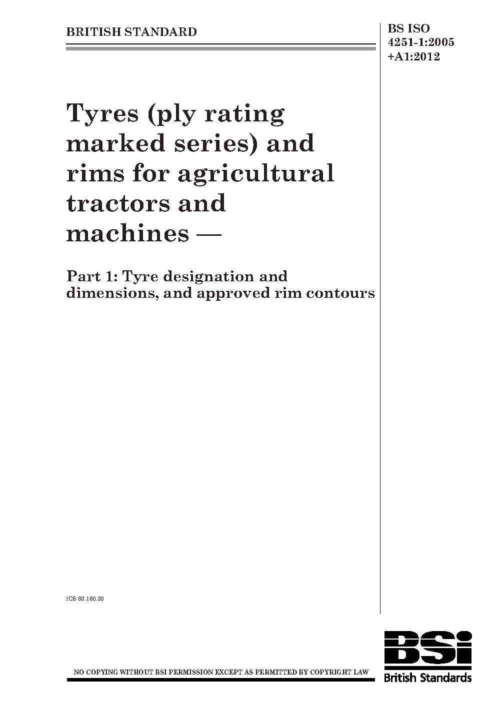 Code designated diagonal tyres (ply rating marked series) for agricultural tractors, trailers and machines Tyre designation dimensions, approved rim contours