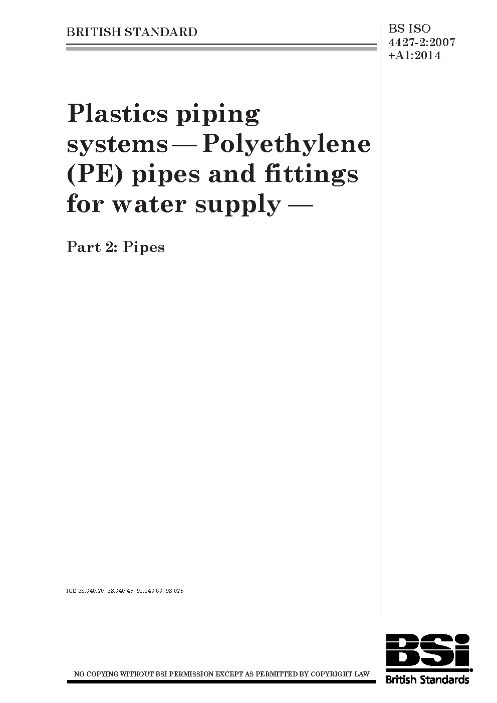 BS ISO 4427-2:2007+A1:2014