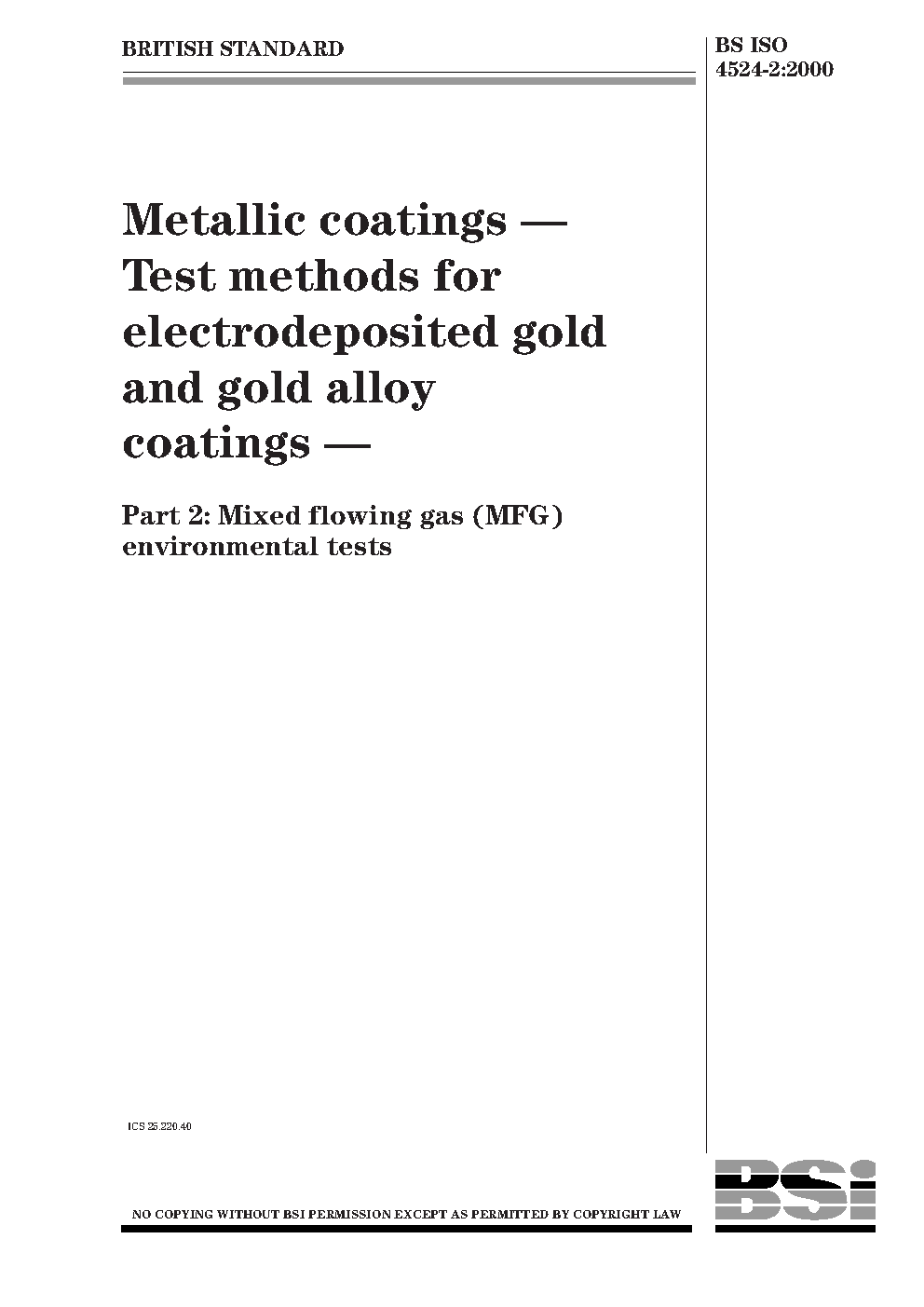 Metallic coatings. Test methods for electrodeposited gold and alloy coatings Mixed flowing gas (MFG) environmental tests