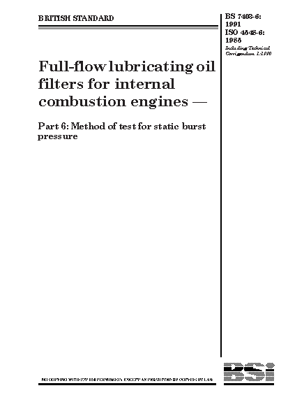 Methods of test for full-flow lubricating oil filters internal combustion engines Static burst pressure