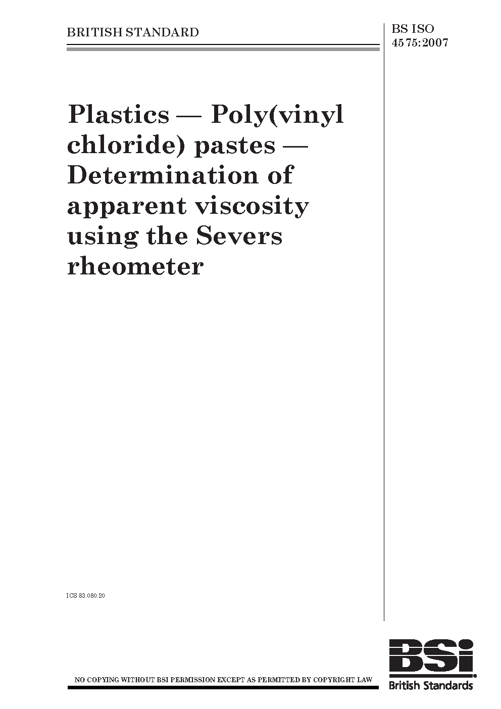 Plastics. Poly(vinyl chloride) pastes. Determination of apparent viscosity using the Severs rheometer