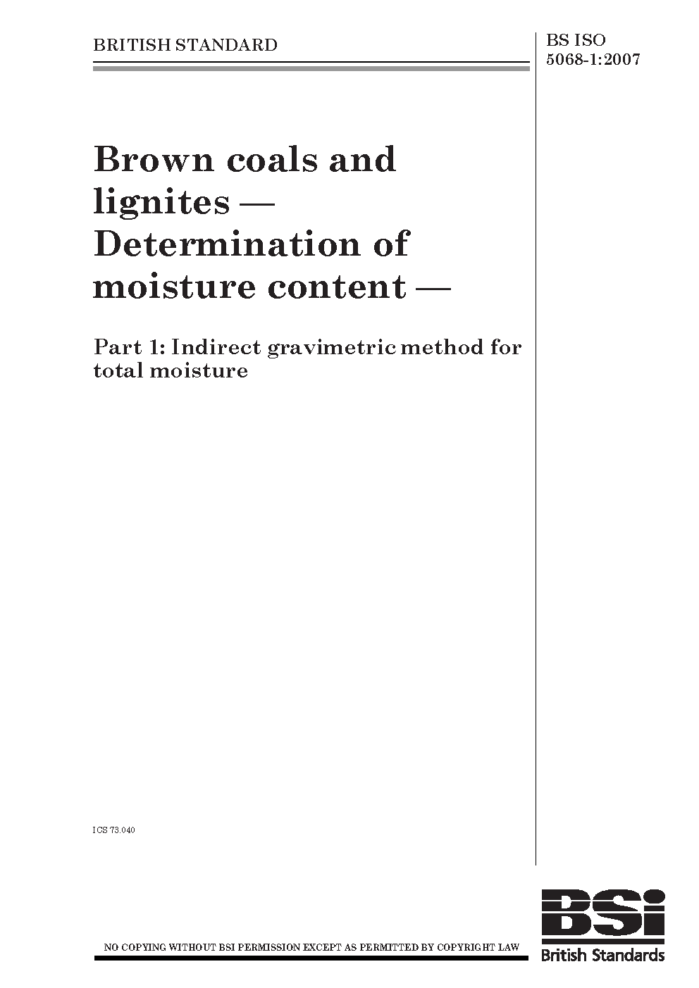 Brown coals and lignites. Determination of moisture content Indirect gravimetric method for total