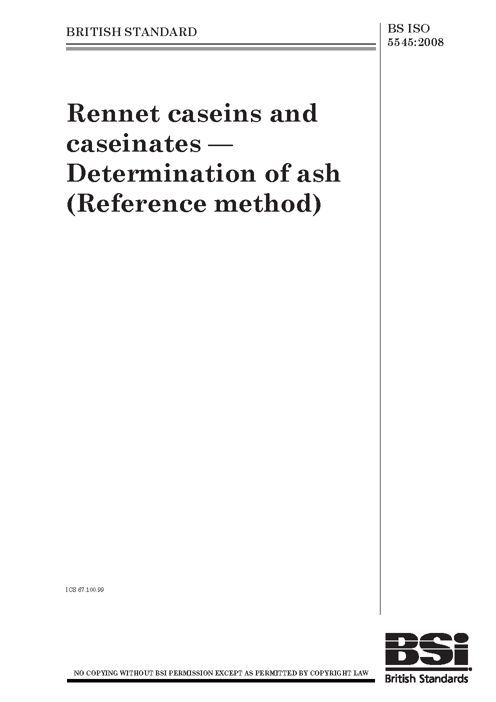 Rennet caseins and caseinates. Determination of ash (Reference method)