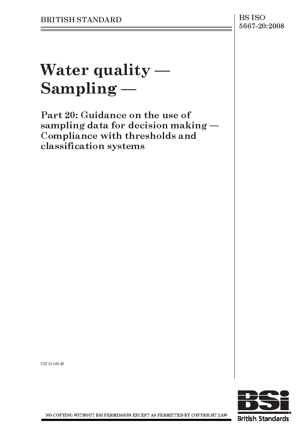 Water quality. Sampling Guidance on the use of sampling data for decision making. Compliance with thresholds and classification systems