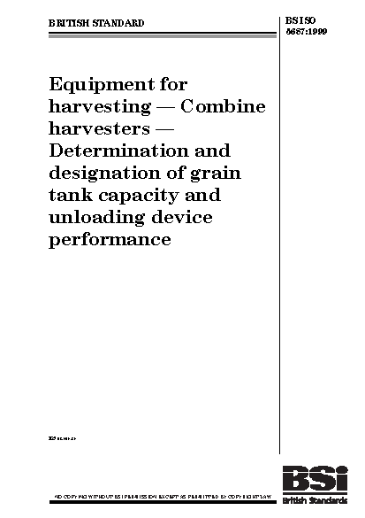 Equipment for harvesting. Combine harvesters. Determination and designation of grain tank capacity and unloading device performance
