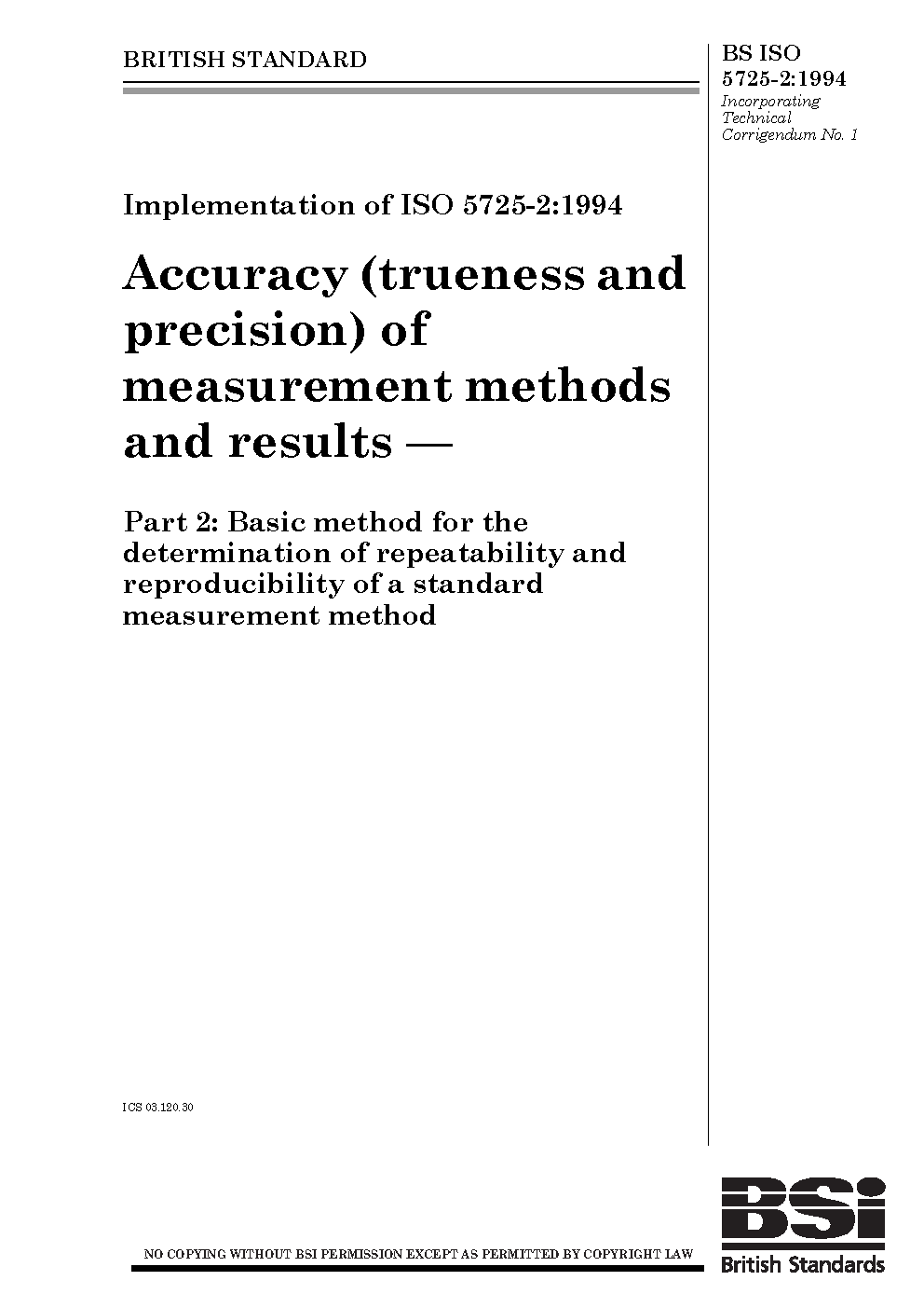Accuracy (trueness and precision) of measurement methods results Basic for the determination repeatability reproducibility a standard method