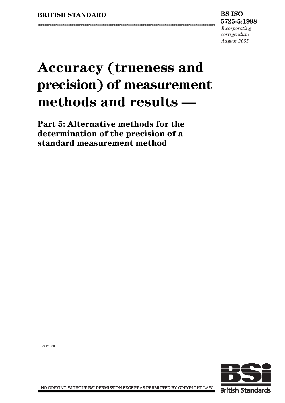 BS ISO 5725-5:1998
