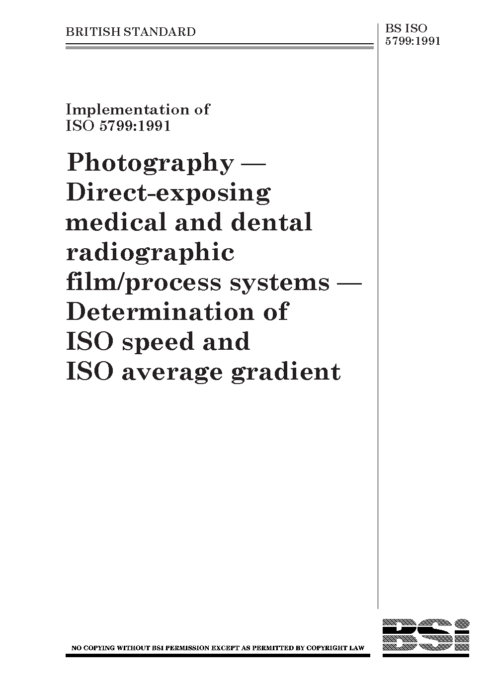 Photography. Direct-exposing medical and dental radiographic film/process systems. Determination of ISO speed and ISO average gradient