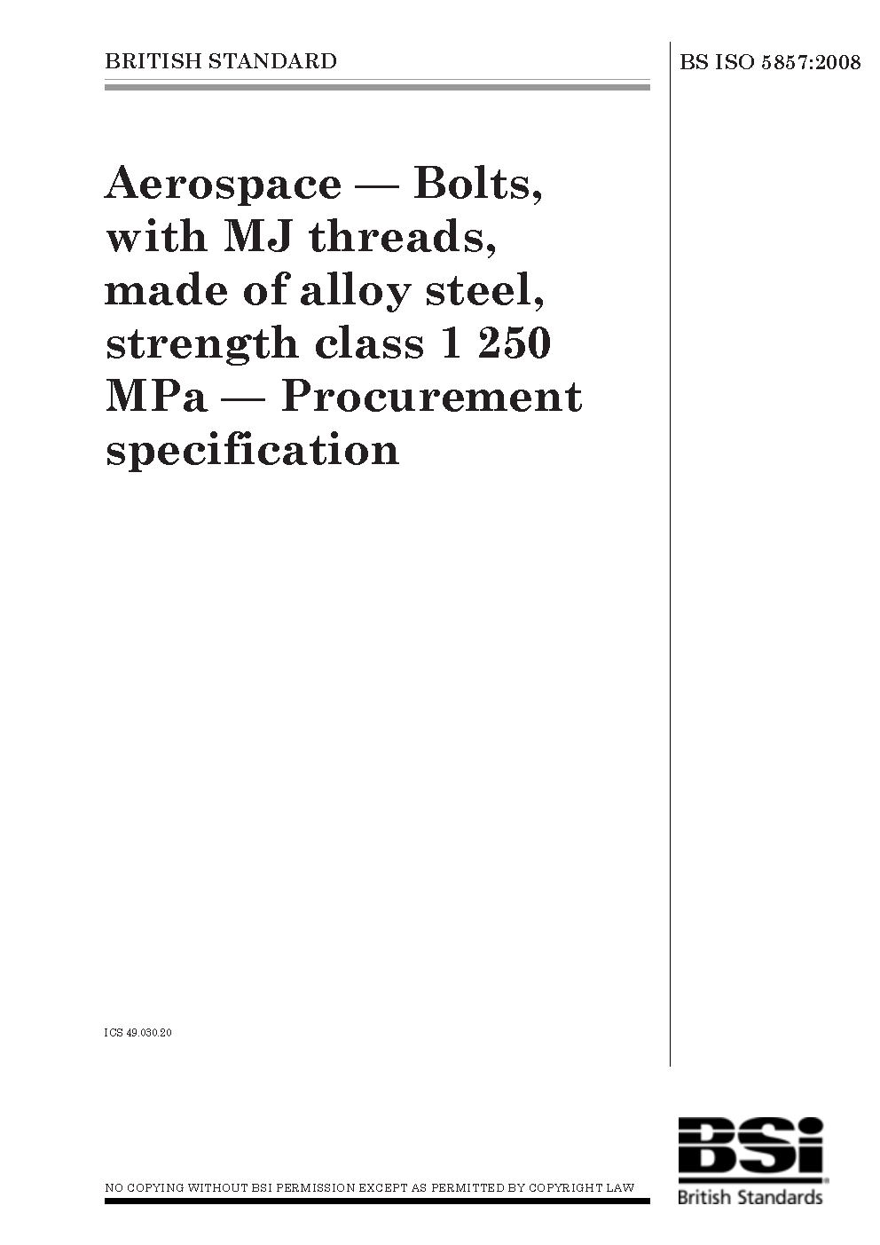 Aerospace. Bolts, with MJ threads, made of alloy steel, strength class 1250 MPa. Procurement specification