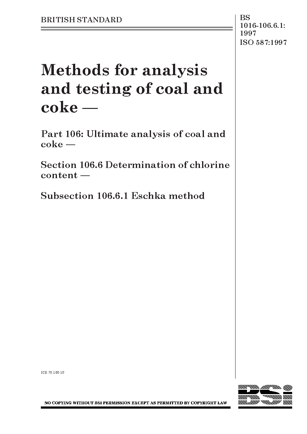 Test equipment;Fossil fuels;Coal products;Testing conditions;Fuels;Coke;Solid fuels;Volumetric analysis;Chemical analysis and testing;Determination of content;Quantitative analysis;Lignite;Eschkas reagent;Combustion test methods;Precision;Residue-on-ignition determination;Coal;Extraction methods of analysis;Chlorine;Safety measures;Equations;Accuracy;Gravimetric analysis;Oxidation methods