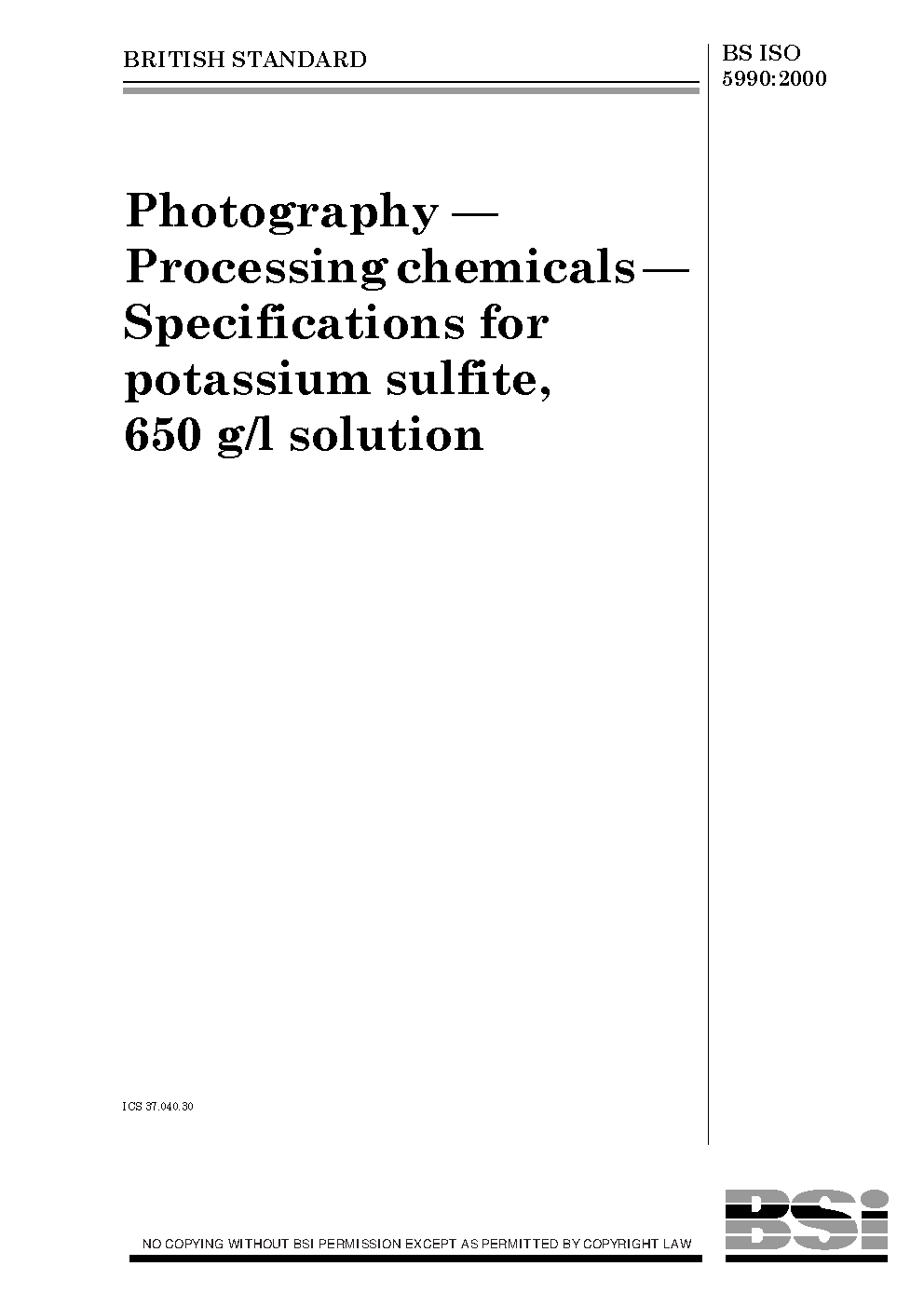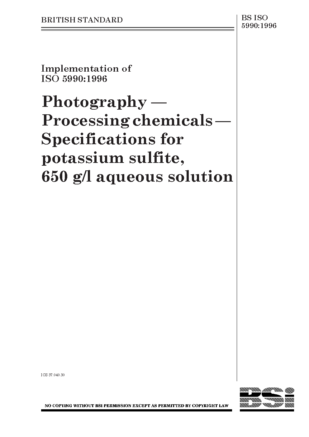 Photographic materials;Photographic chemicals;Purity;Chemical analysis and testing;Potassium inorganic compounds;Sulfites;Photography