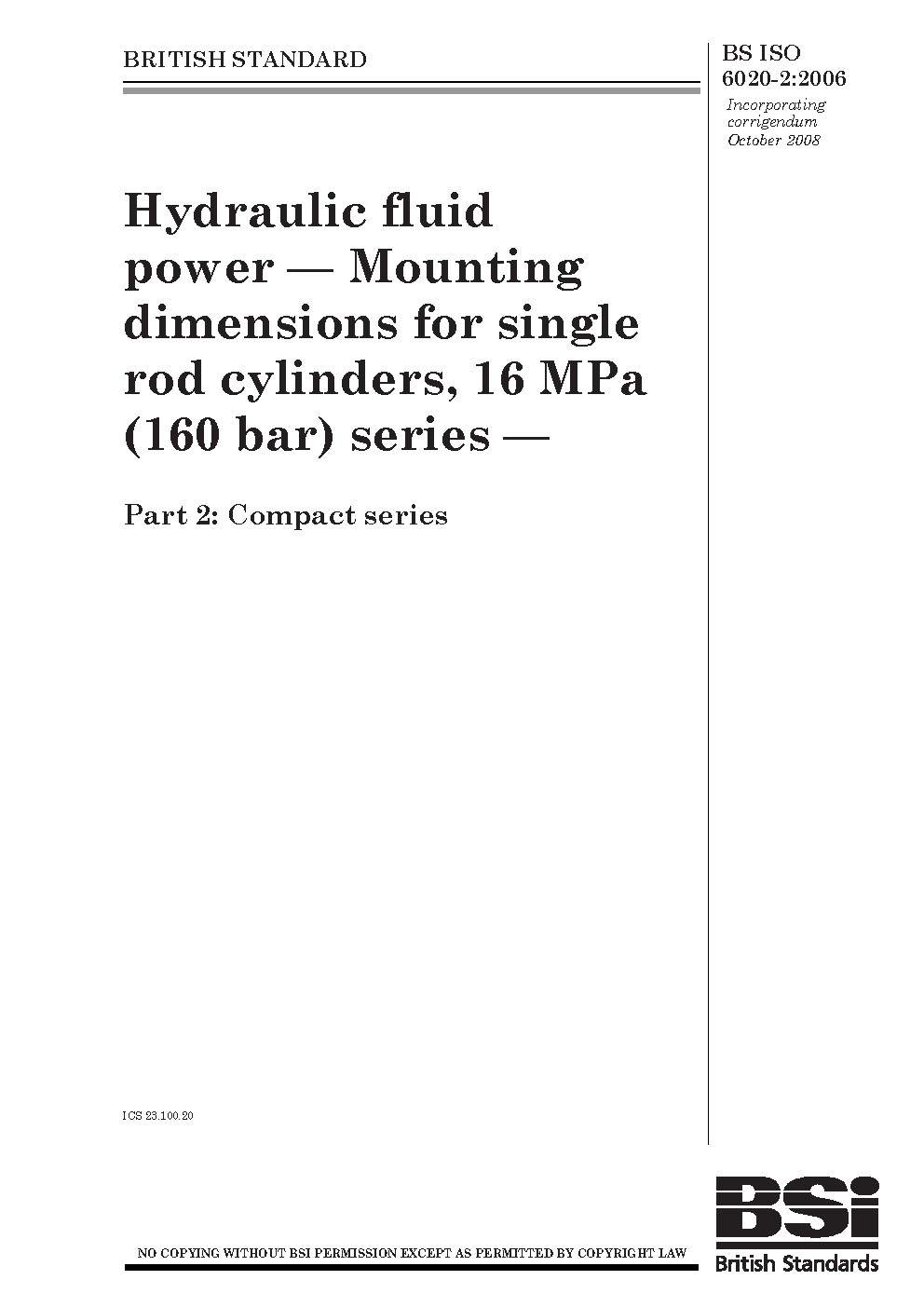 Hydraulic fluid power. Mounting dimensions for single rod cylinders, 16 MPa (160 bar) series Compact