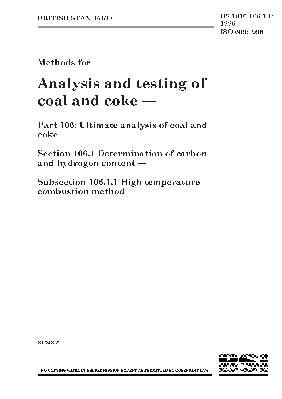 Coal and coke. Determination of carbon and hydrogen. High temperature combustion method