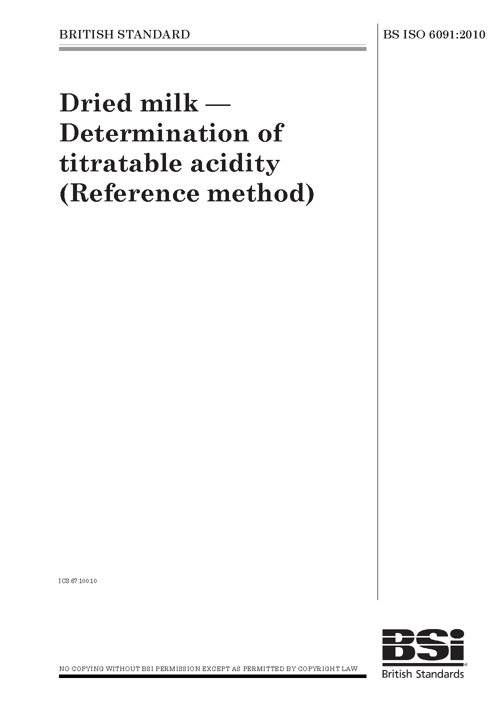 Dried milk. Determination of titratable acidity (Reference method)