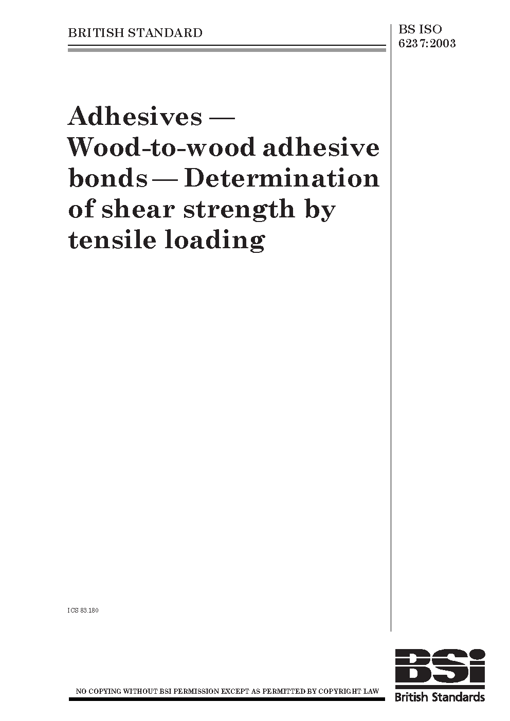 Adhesives. Wood-to-wood adhesive bonds. Determination of shear strength by tensile loading