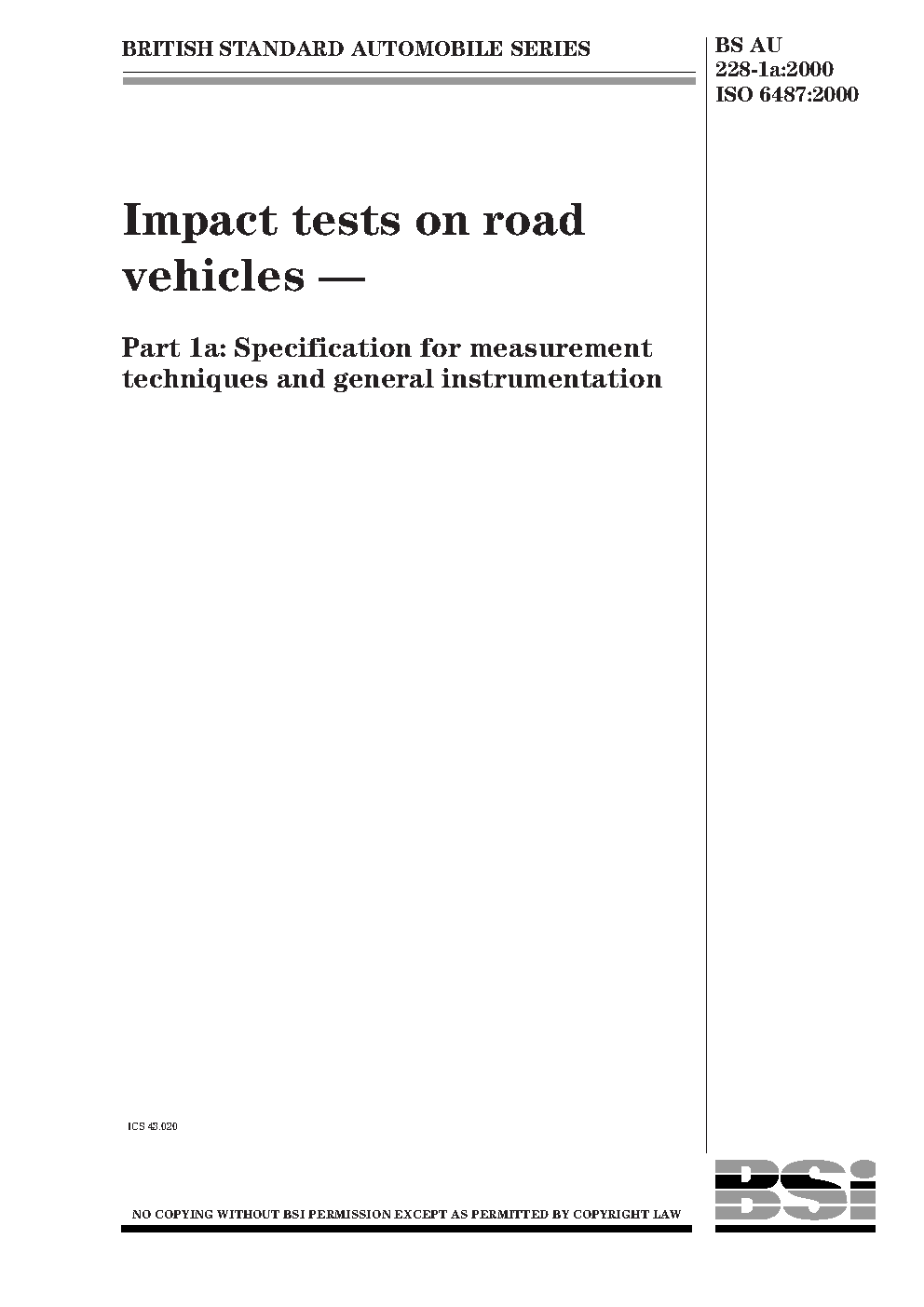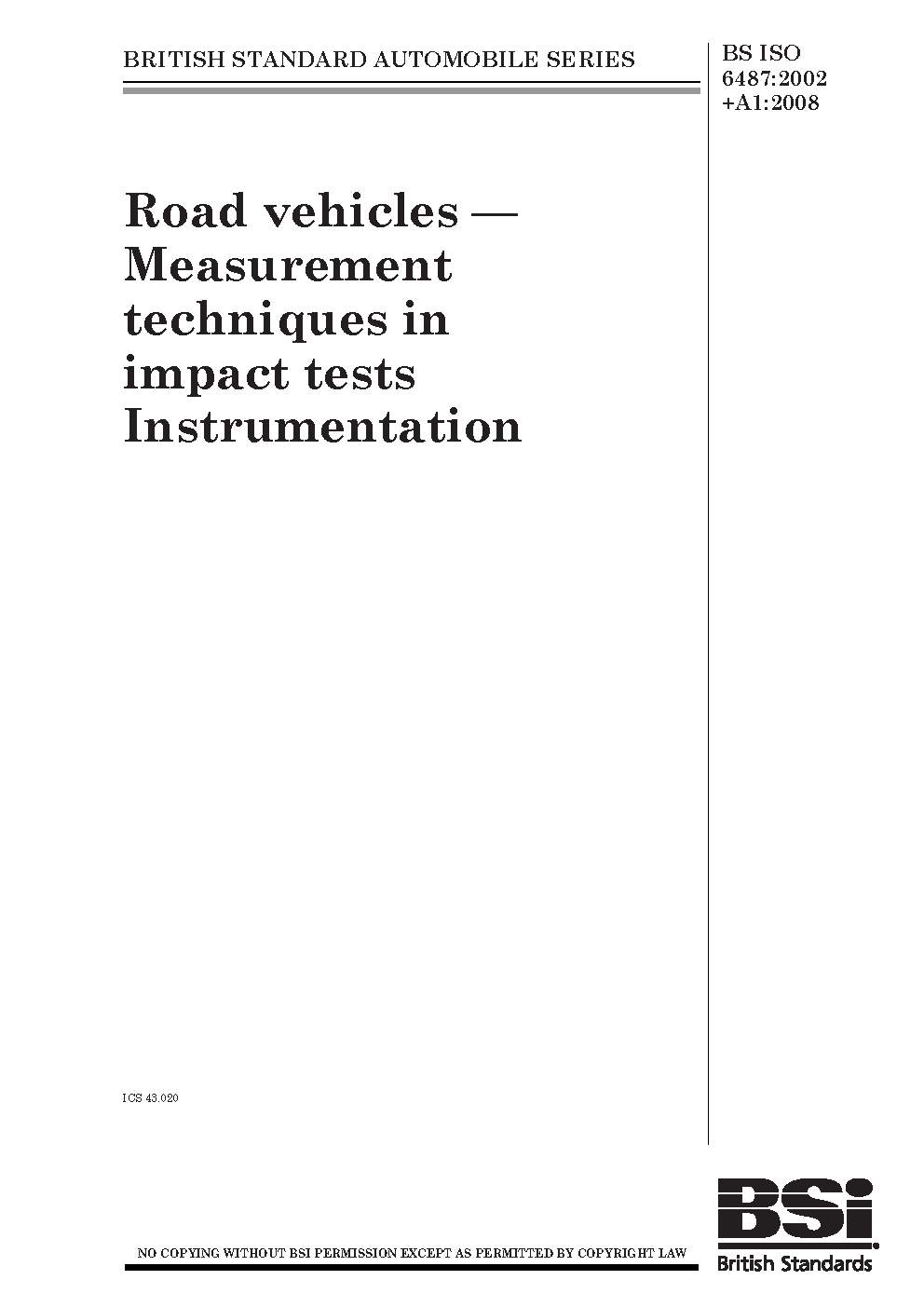 Road vehicles. Measurement techniques in impact tests. Instrumentation