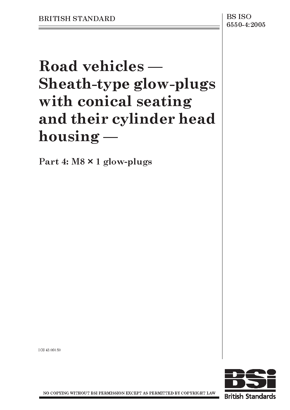 Road vehicles. Sheath-type glow-plugs with conical seating and their cylinder head housing M8 x 1