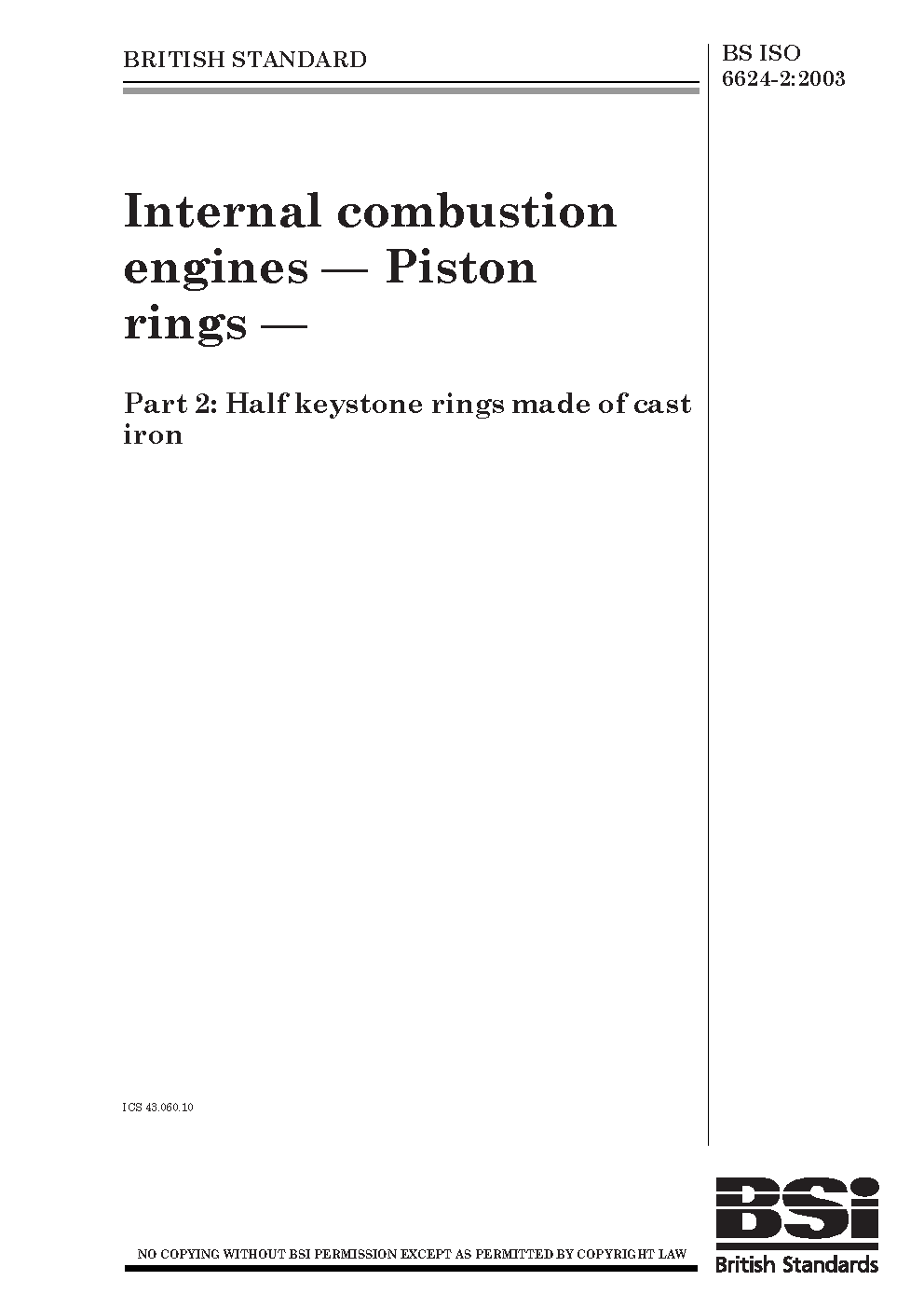 Internal combustion engines. Piston rings Half keystone made of cast iron