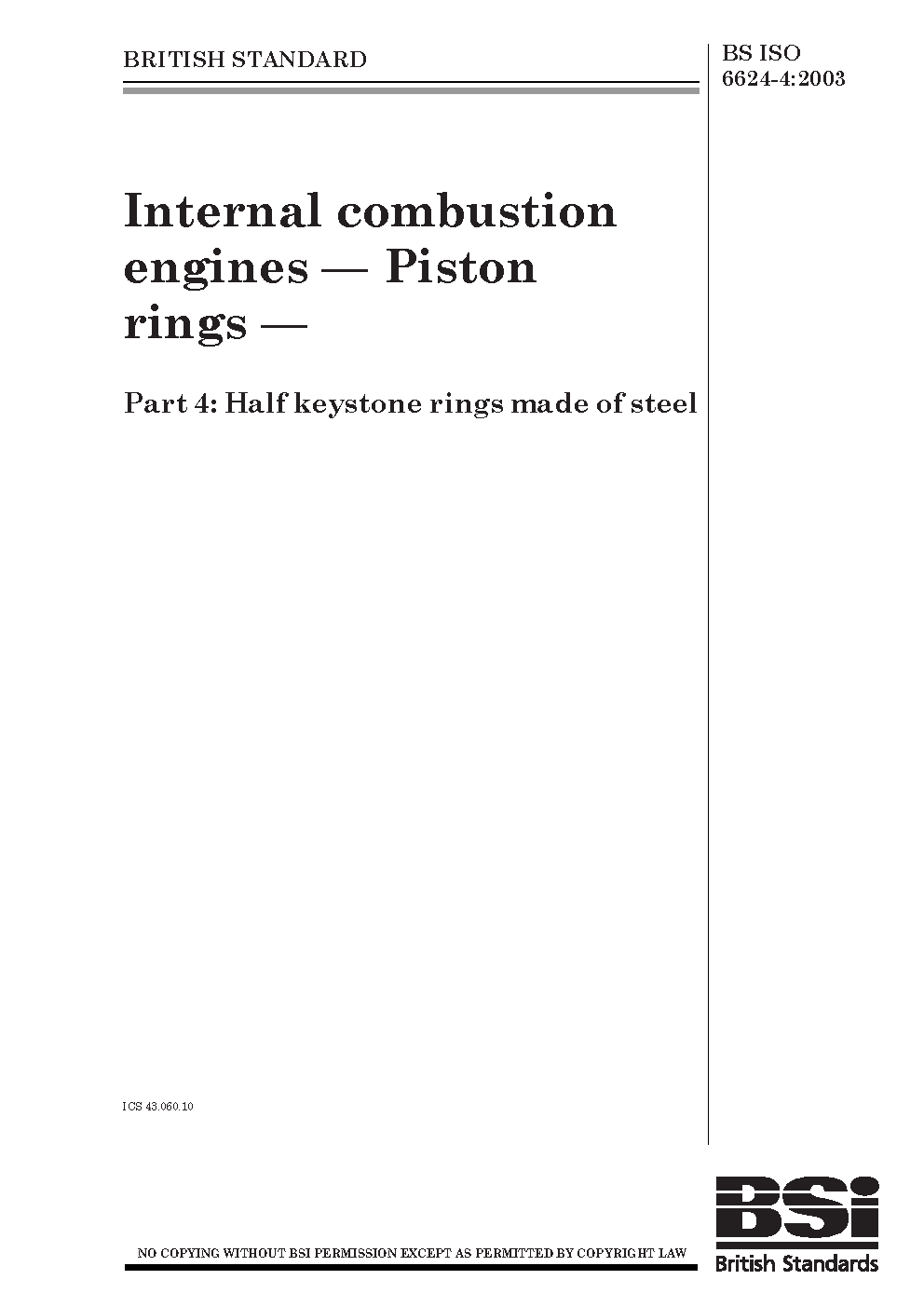 Internal combustion engines. Piston rings Half keystone made of steel