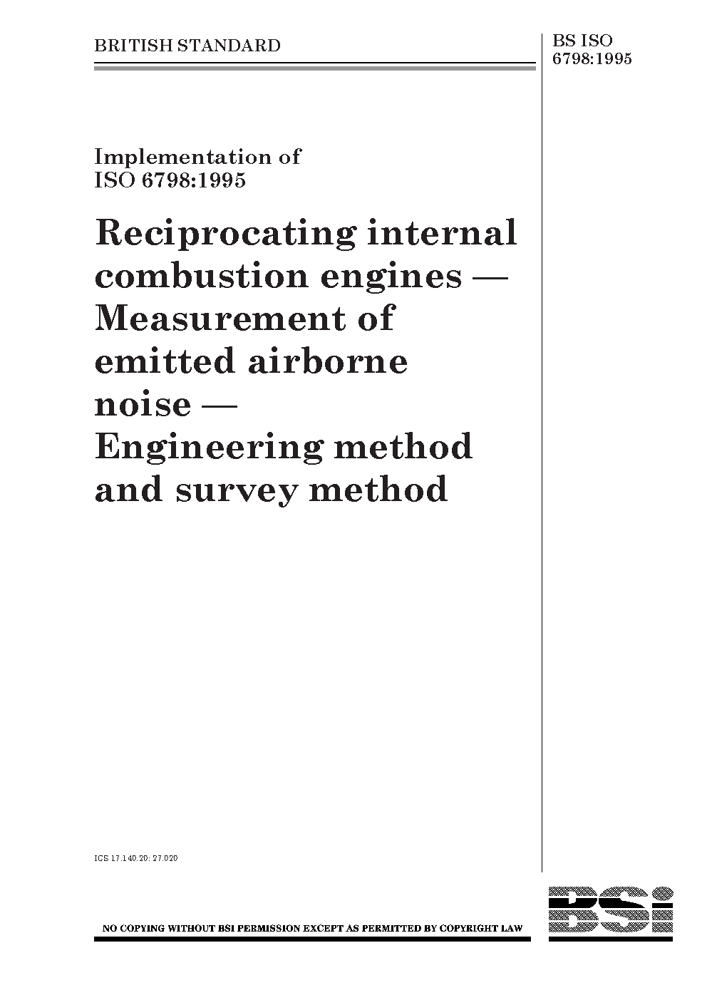 Prime movers;Noise (environmental);Testing conditions;Internal combustion engines;Reciprocating engines;Sound intensity;Accuracy;Equations;Mathematical calculations;Air intakes;Measurement characteristics;Grades (quality);Acoustics;Installation;Dimensions;Acoustic measurement;Error correction;Exhaust pipes