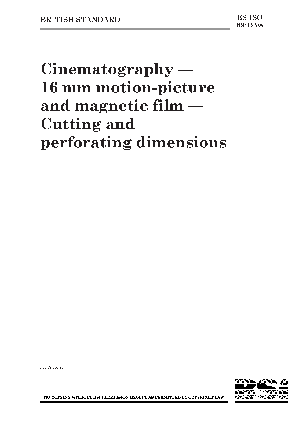 Dimensional tolerances;Motion-picture film size;Cutting;Longitudinal;Identification methods;Magnetic recording;Cinematography;Photographic film;Homogeneity;Perforations;Position control;Humidity;Dimensions;Motion-picture film