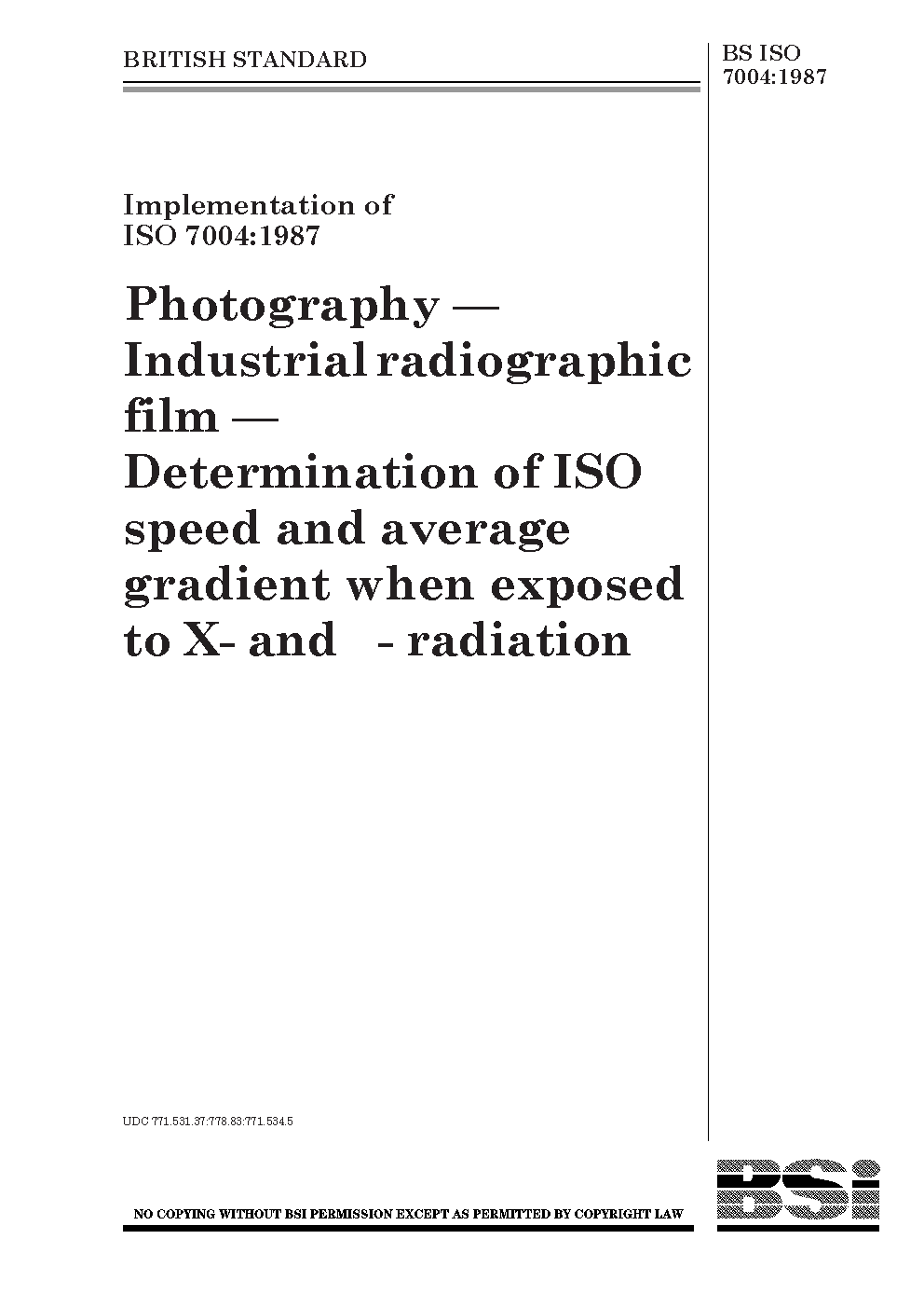 Photography. Industrial radiographic films. Determination of ISO speed, ISO average gradient and ISO gradients G2 and G4 when exposed to X- and gamma-radiation