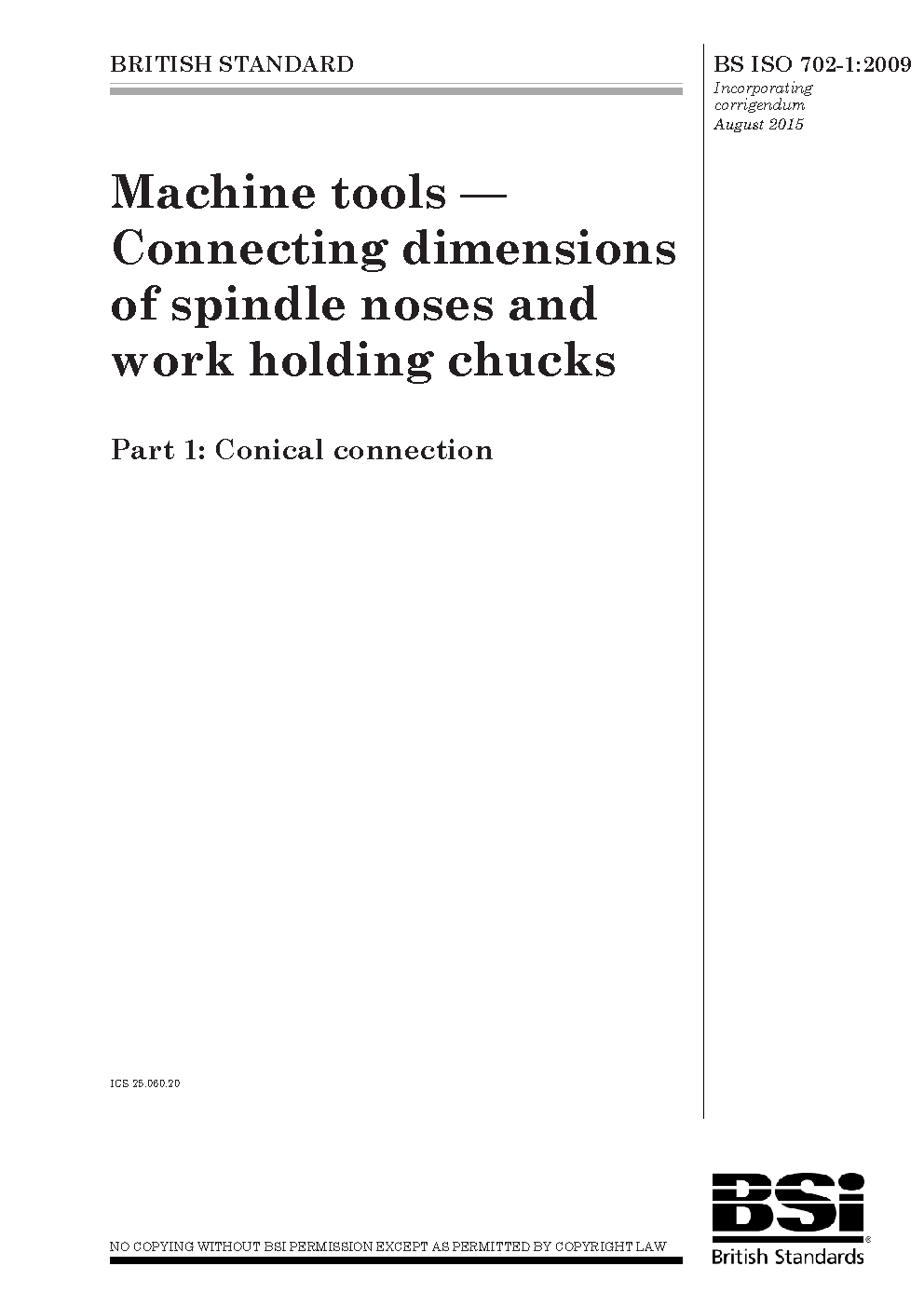 Machine tools. Connecting dimensions of spindle noses and work holding chucks Conical connection